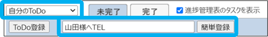 「簡単登録」は、自分のToDoと共有ToDoのみ登録できます。