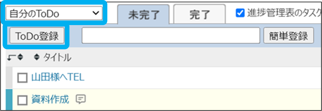 ②「自分のToDo」を選択し、「ToDo登録」をクリック