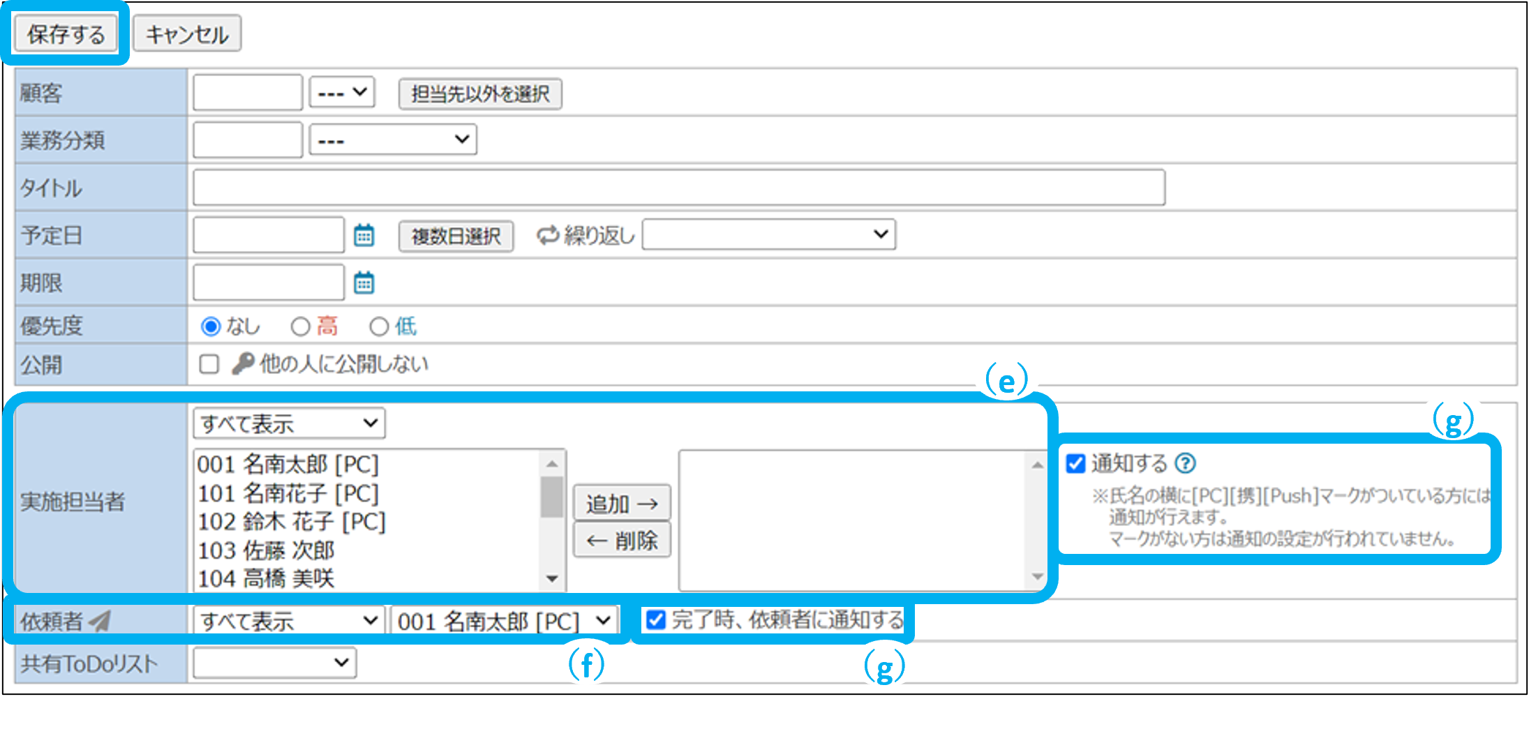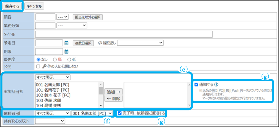 実施担当者を複数名設定した場合、それぞれの職員に対してToDoが登録されます。