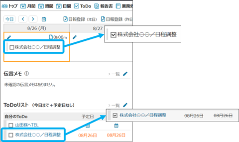 完了日がチェックをした日ではない場合、ToDo参照から完了日を変更してださい。