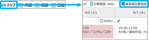 グループウェアトップ・カレンダーの各画面から、業務報告書を作成します。