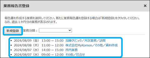 ※新規登録から作成した業務報告書は、カレンダーに業務として表示されます。