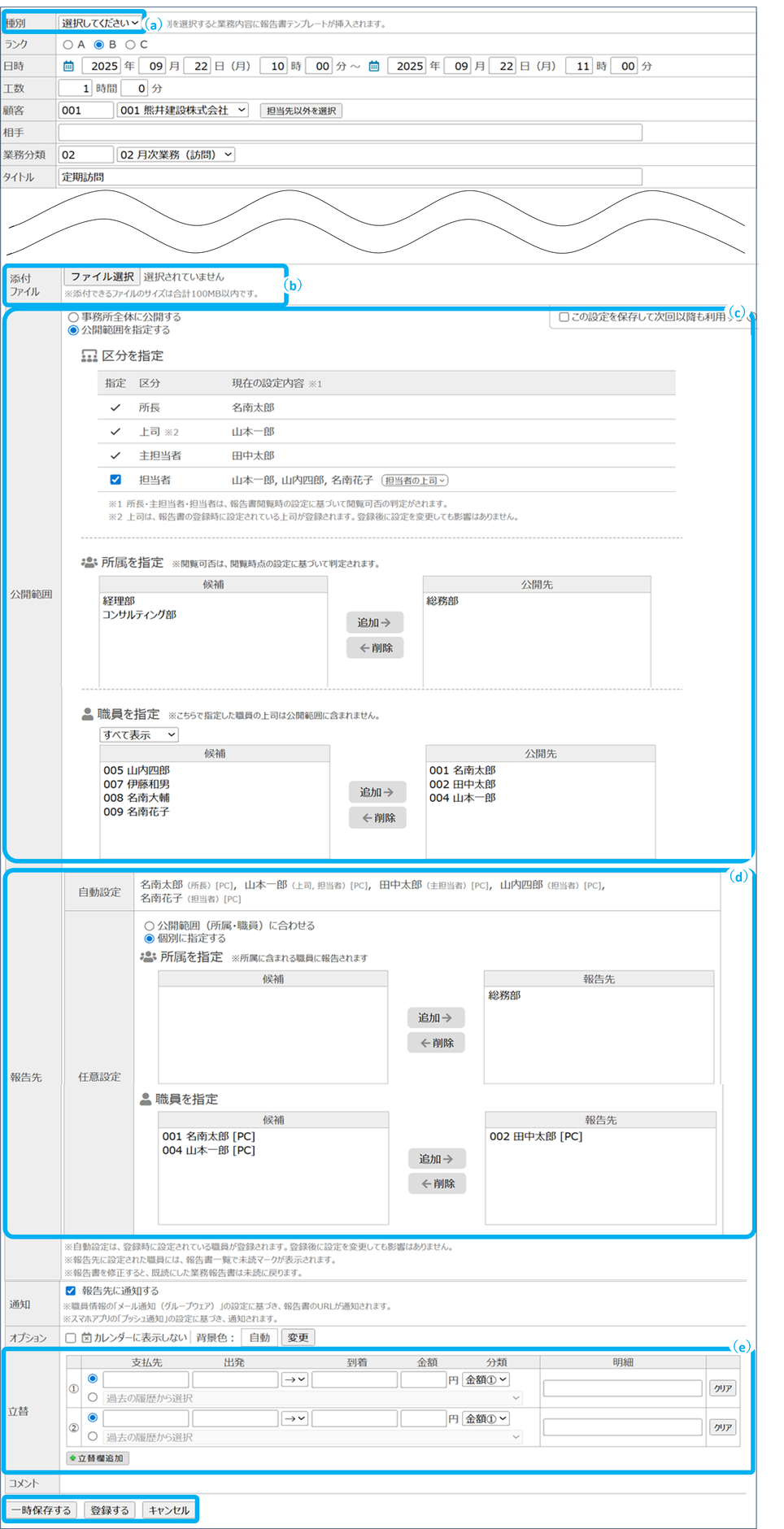 ※一時保存した場合は、報告先に通知されません。