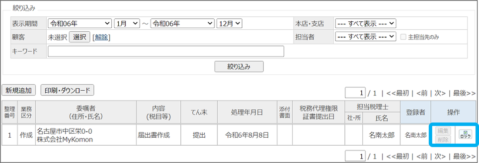 削除は、所長・登録者にて行うことができます。
