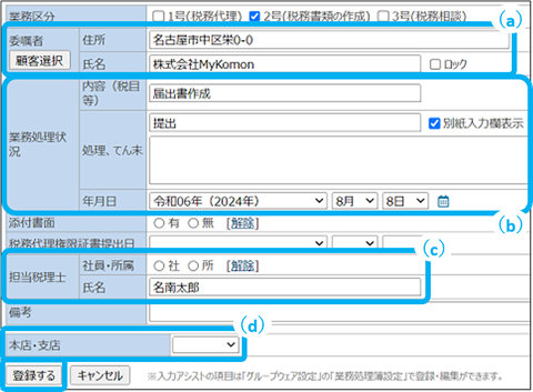業務処理簿の作成・編集・削除