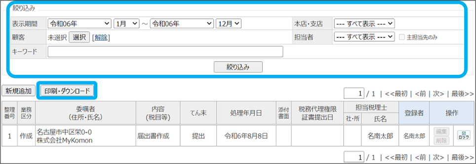 業務処理簿を印刷・ダウンロードできます。