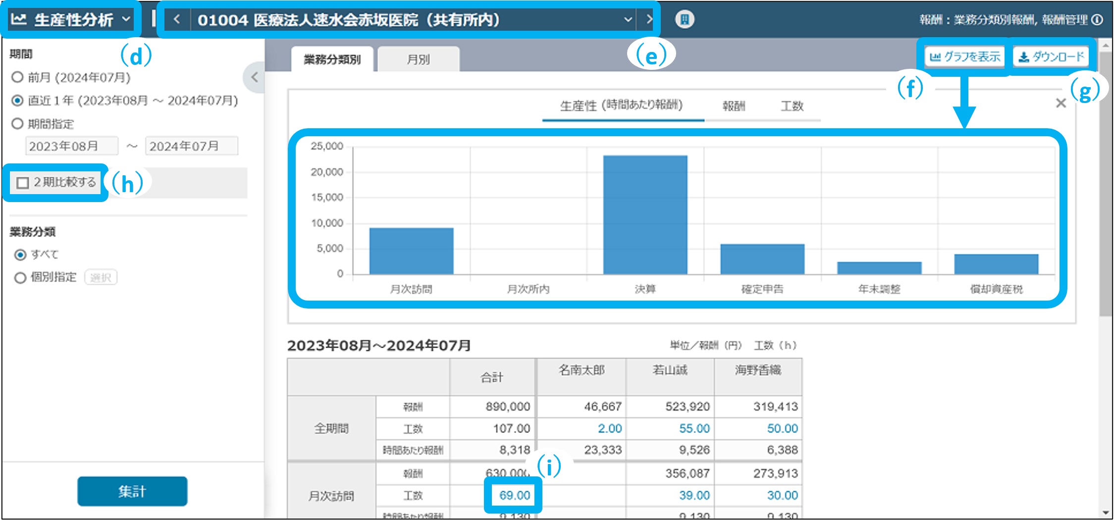 (d)生産性分析/損益分析/予実分析