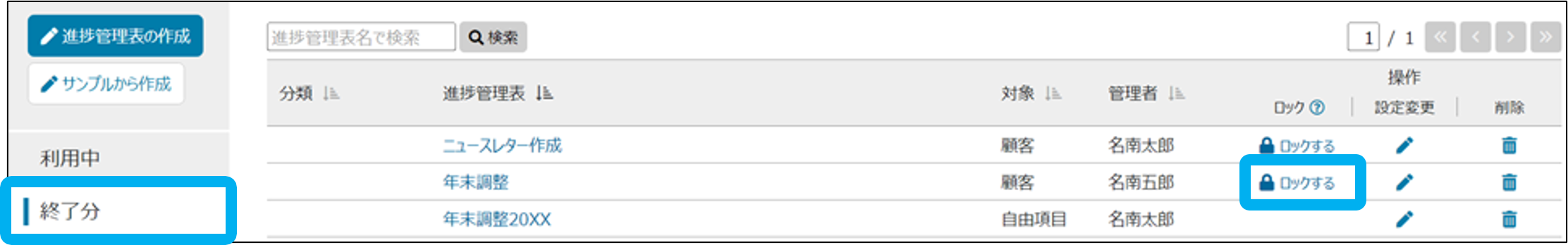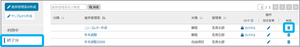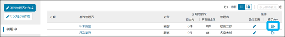 ※作成者・管理者、および所長・IT担当者のみ「終了分」へ移動できます。