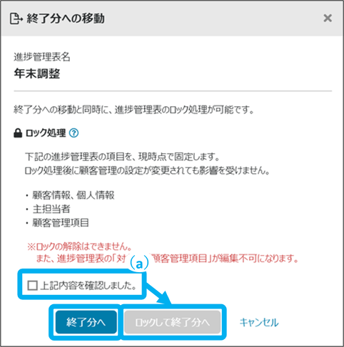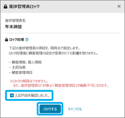 ※ロックをすると、その時点の顧客情報や顧客管理項目が保持されます。