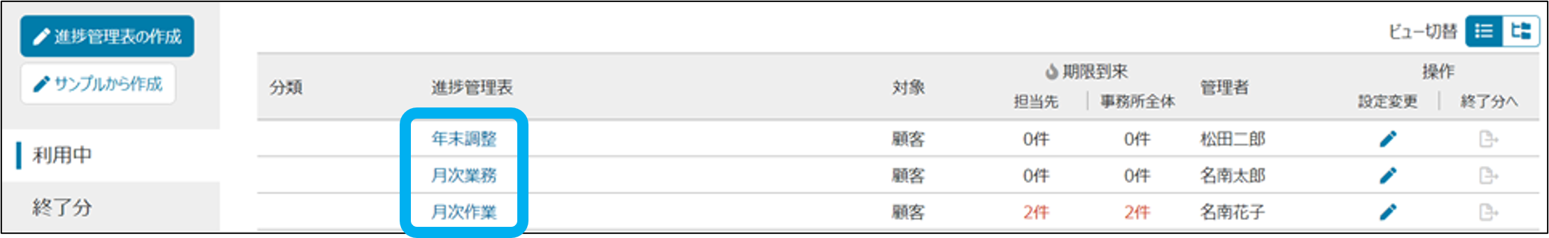 ②進捗管理表名をクリック