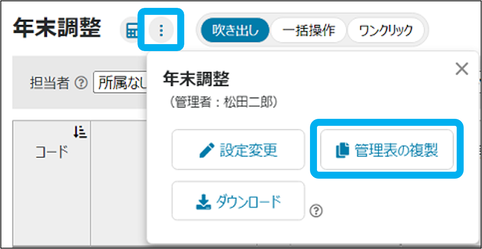 ③「︙」をクリックし、「管理表の複製」をクリック