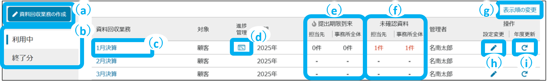 詳細は、表示順の変更(資料回収業務)をご覧ください。