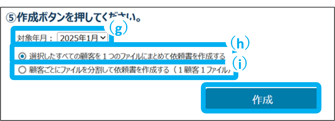※顧客ごとに作成を選択した場合、一度に作成できる依頼書は最大100件です。