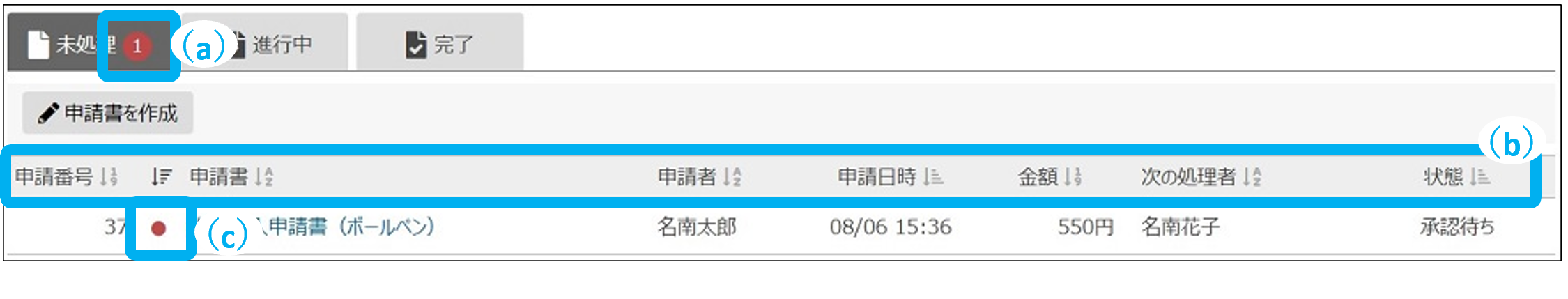 未処理・未確認の申請書がある場合、ホームに件数が表示されます。