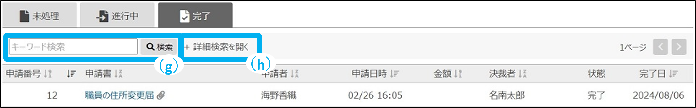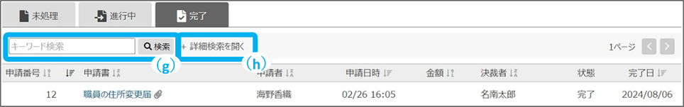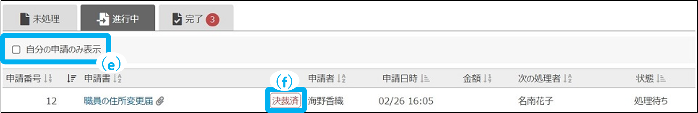 全ての処理が完了した申請書と、却下された申請書が表示されます。