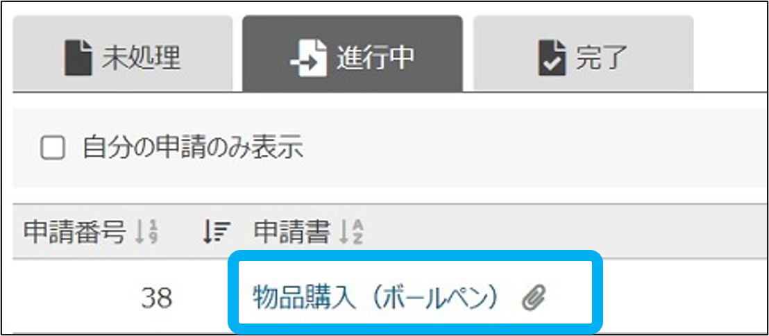 ②「進行中」の申請書をクリック