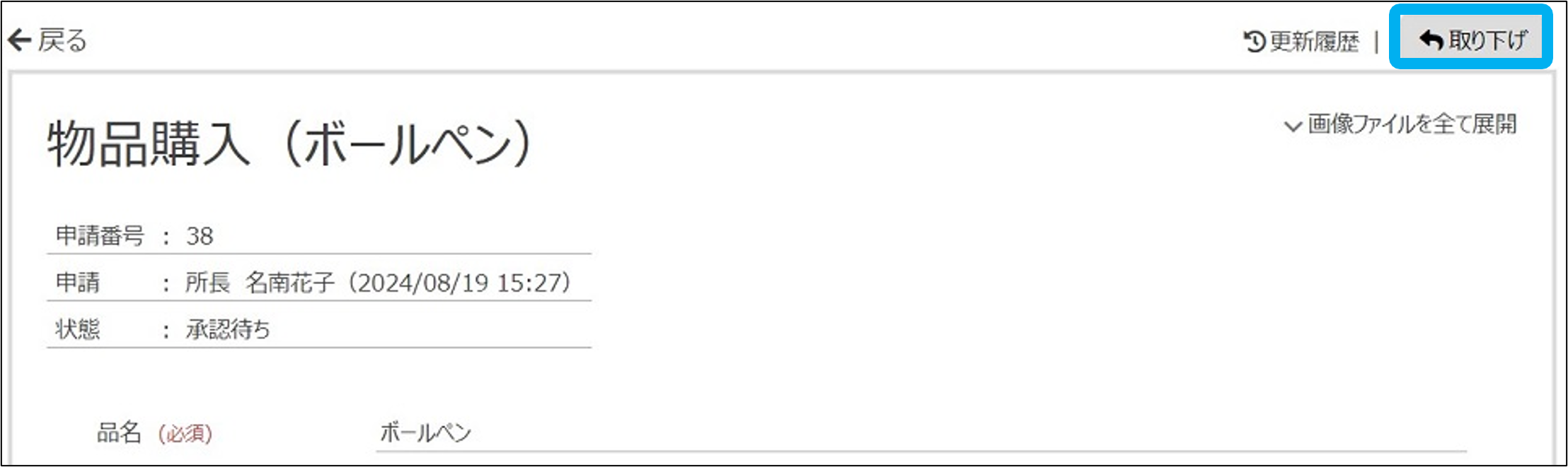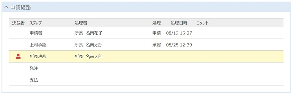 ※申請者から2つ以上先のステップにある申請書には、「取り下げ」が表示されません。