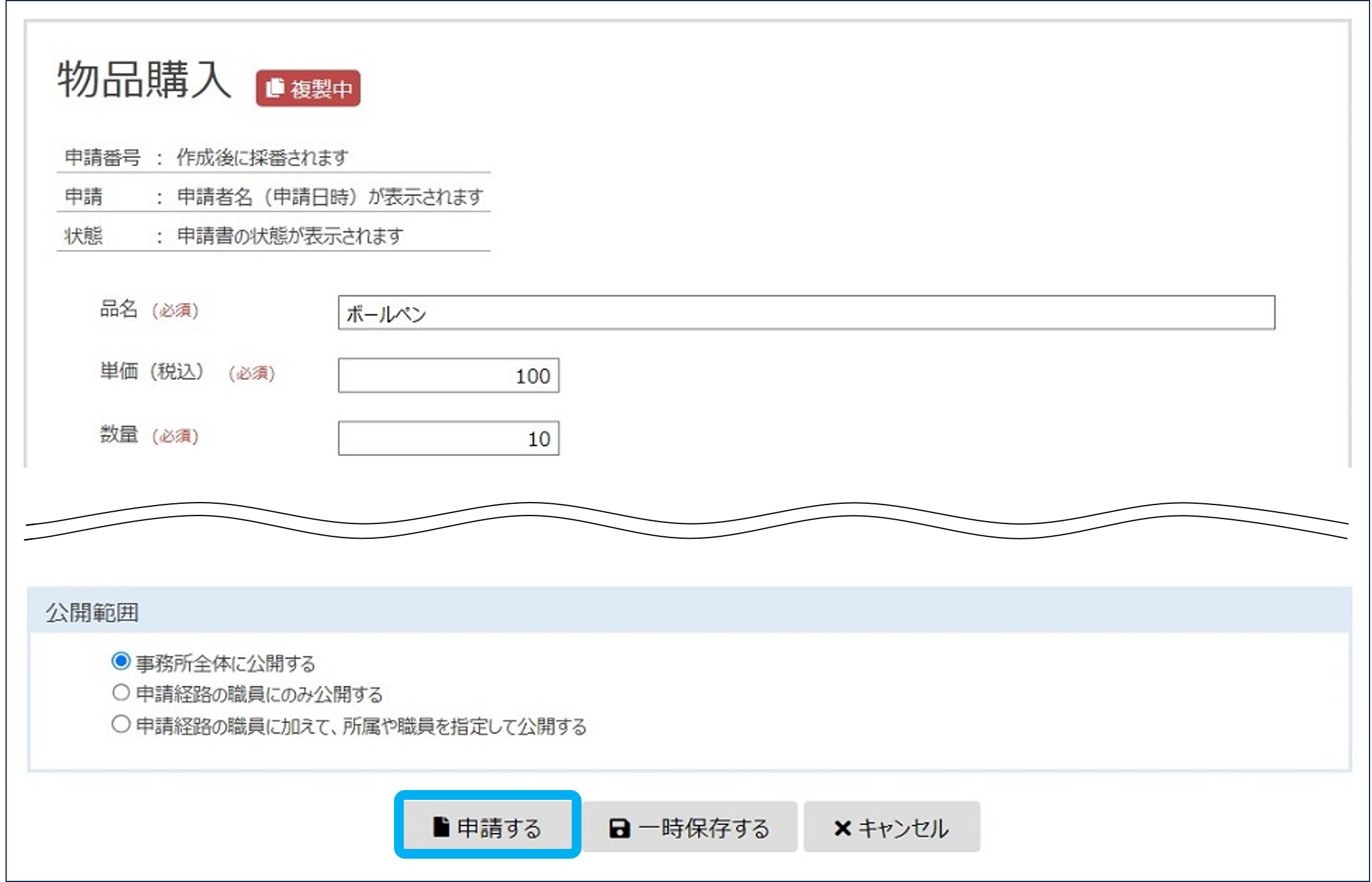 ※申請経路と公開範囲は、現在の申請フォームの設定に基づき、作成されます。