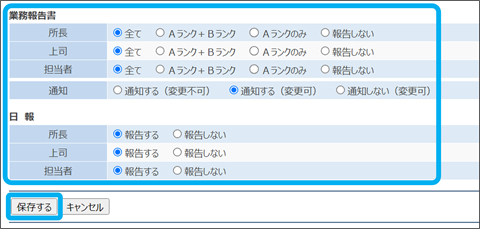 業務報告書・日報の報告先を設定できます。