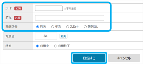 ③コード、名称、報酬区分を選択し、「登録する」をクリック