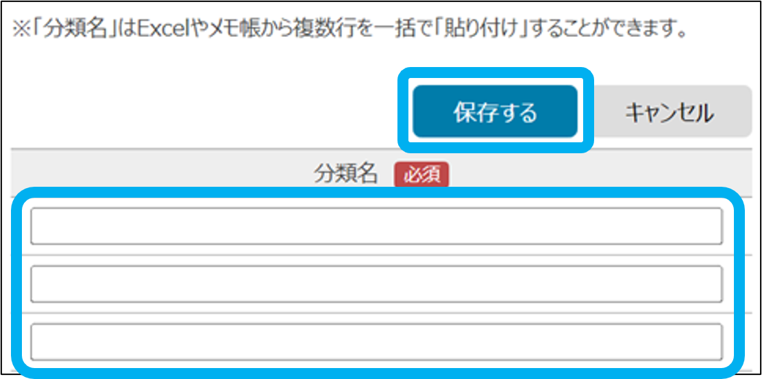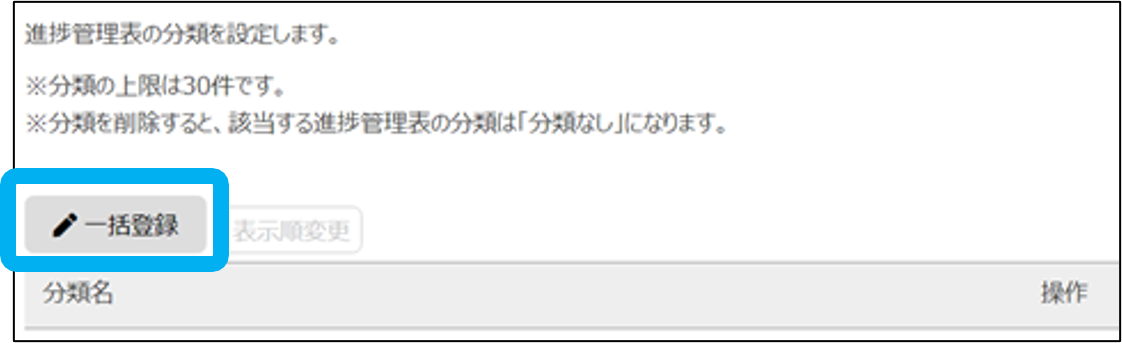 ※分類を削除すると、該当の分類を選択していた進捗管理表は「分類なし」になります。