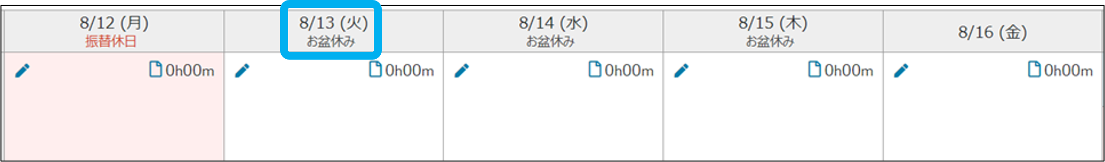 カレンダー上に、登録した休日・イベントが表示されます。