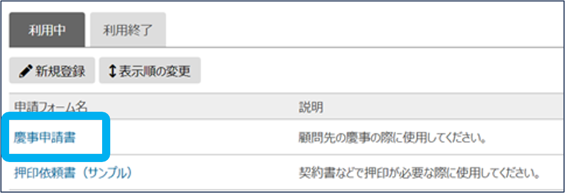 ②申請フォーム名をクリック