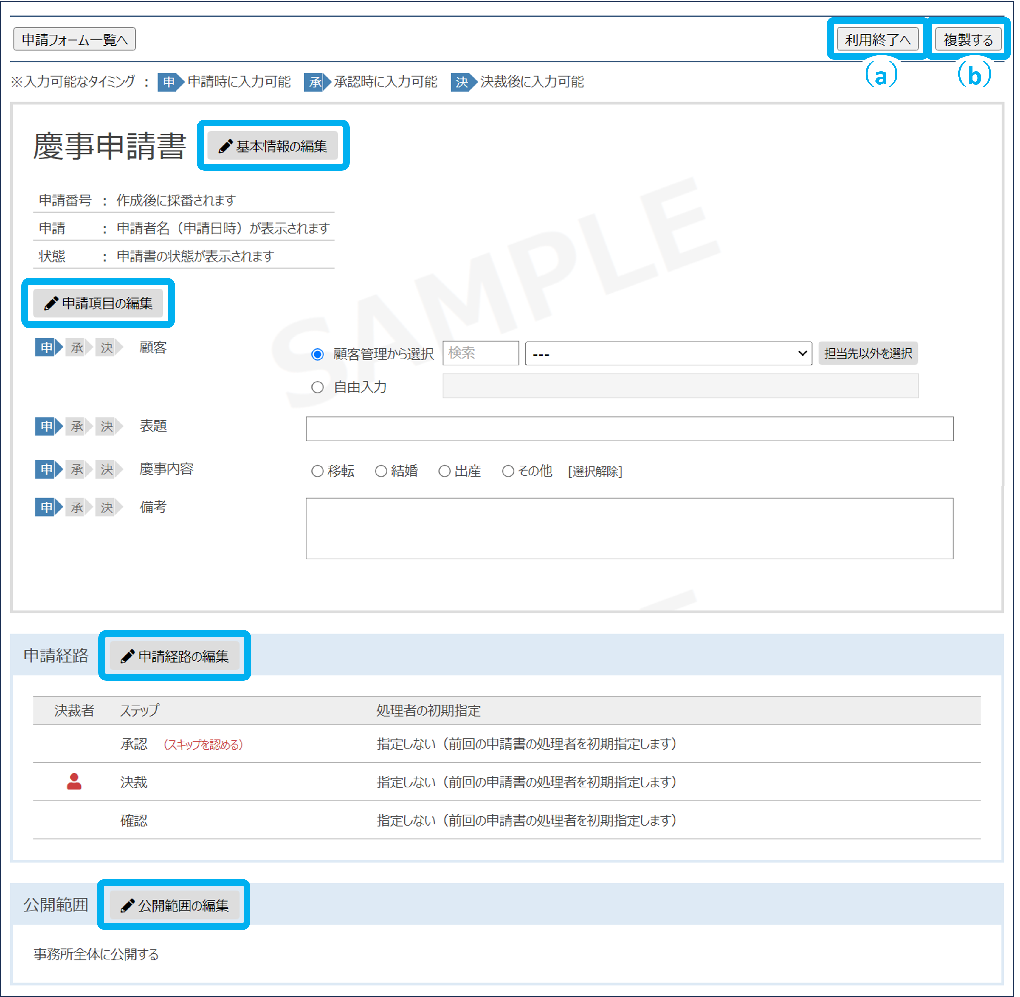 申請フォームを複製できます。
