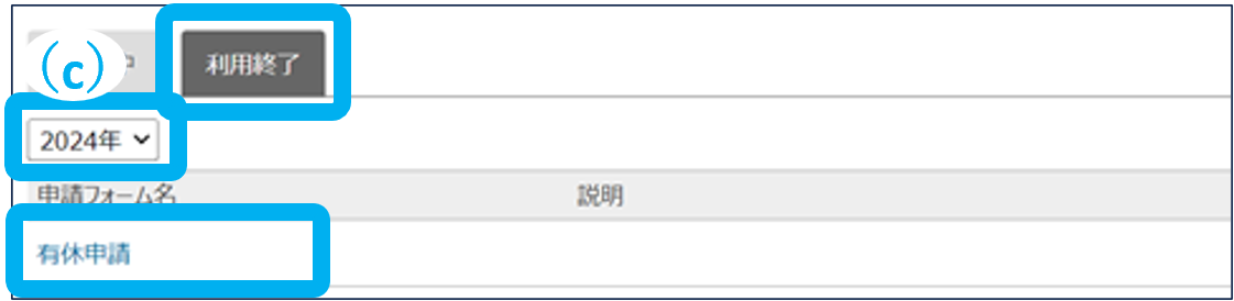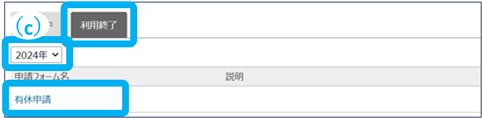 ①「利用終了」をクリックし、申請フォーム名をクリック