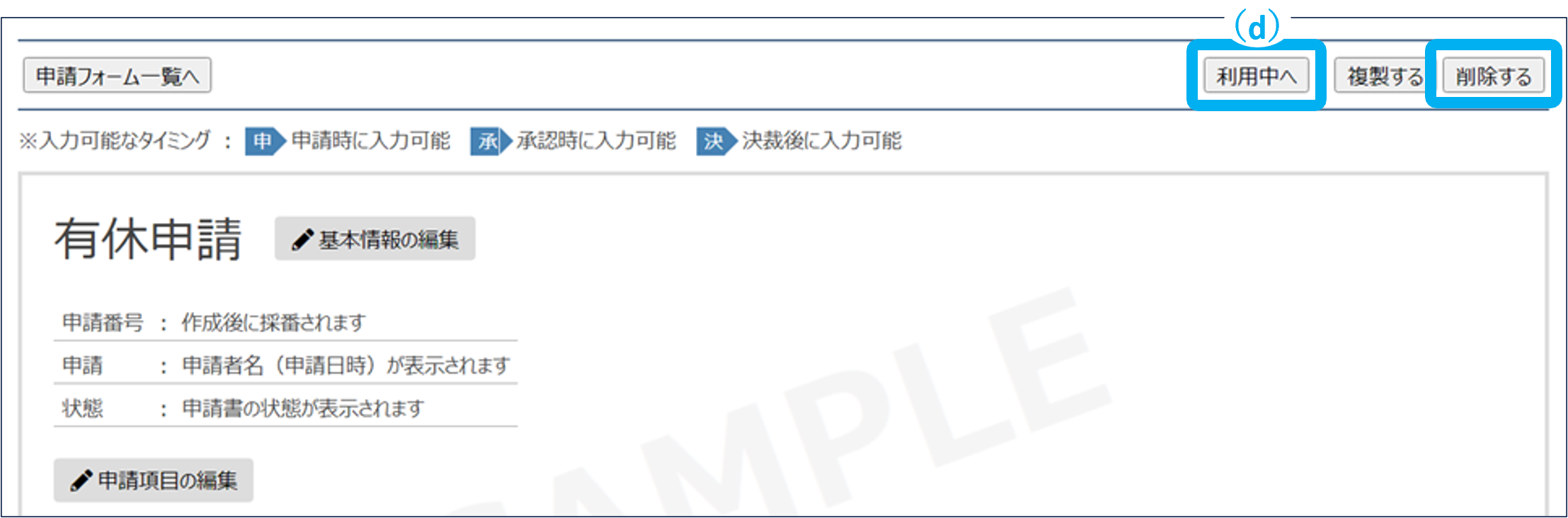 申請フォームを「利用中」に戻すことができます。
