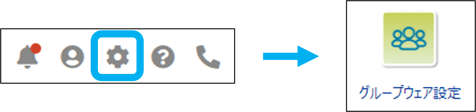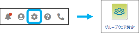 ①「設定」をクリックし、各種設定の「グループウェア設定」をクリック