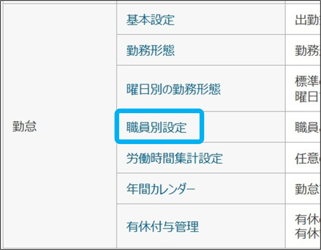 基本設定の職員別設定にチェックを入れた場合に表示されます。