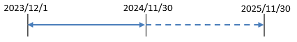 ①今年度付与 期間:2023/12/01~2024/11/30、有効期限:2025/11/30