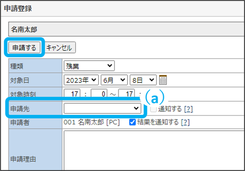 ④申請内容を確認、必要に応じて修正し、「申請する」をクリック