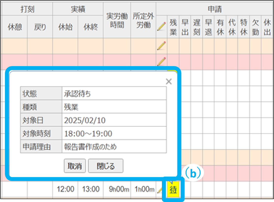 「待」・・・上司による承認待ちの状態です。