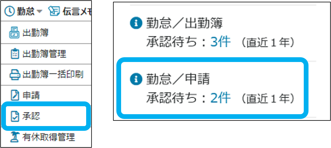 ①「承認」をクリック、またはホームの件数をクリック