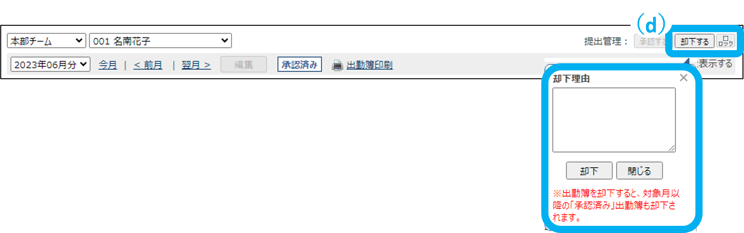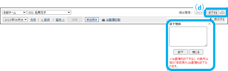 承認済みの出勤簿を却下する
