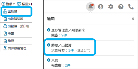 ※設定によっては、必要な申請および承認がないと、出勤簿の提出ができない場合があります。