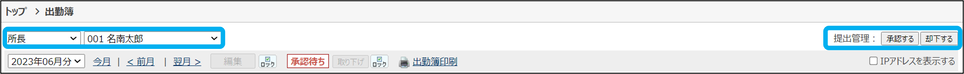 出勤簿(提出・承認・却下・印刷)