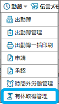②「有休取得管理」をクリック