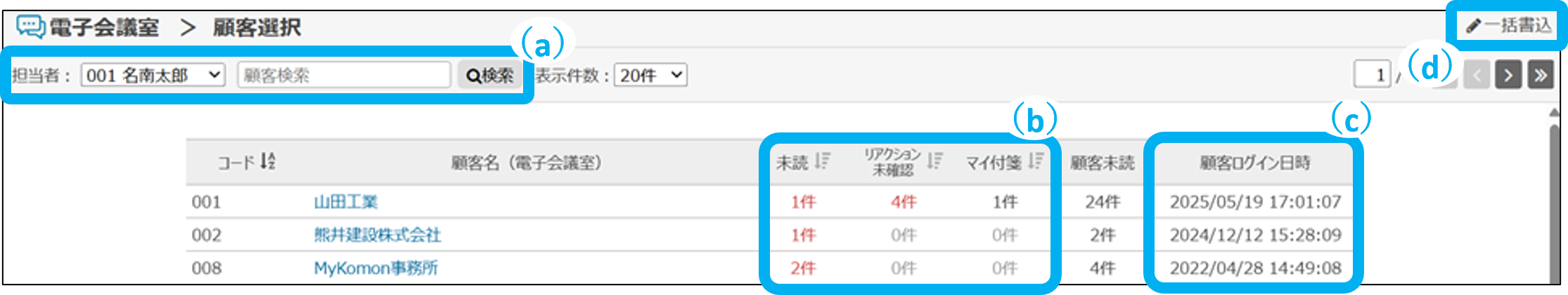 「電子会議室」メニューを最後に利用した日時ではありません。