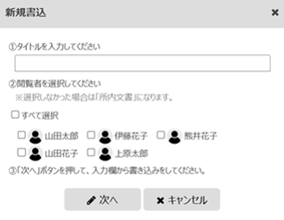 新しい文書を作成します。クリックすると、タイトルと閲覧者を設定する画面が表示されます。