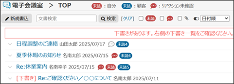 未読文書、未確認のリアクションがあるタイトルの横に、アイコンが表示されます。