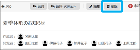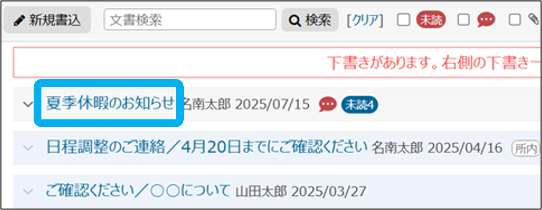 ※削除したい文書に対して、下書き文書の返答が残っている場合、その文書を削除できません。