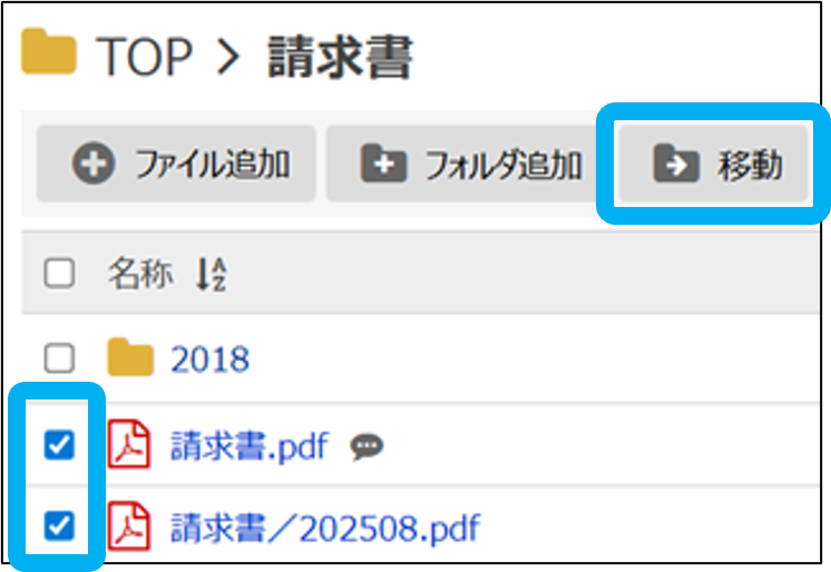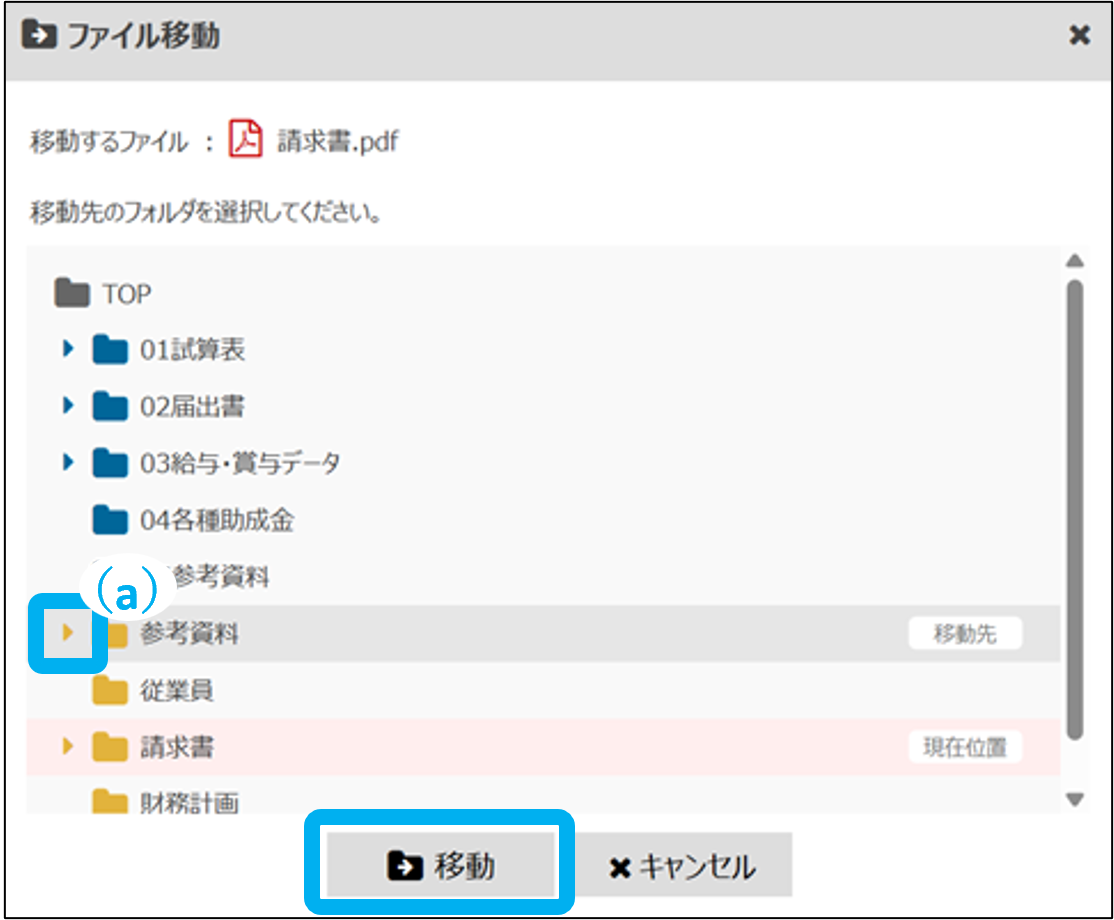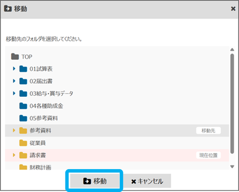 ④フォルダまたはファイルにチェックし、「移動」をクリック