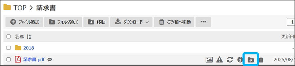 ④フォルダまたはファイルにカーソルを合わせ、アイコンをクリック