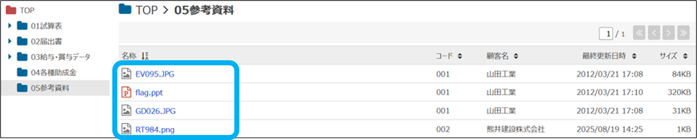 共有フォルダの関連マニュアル 会計・社労士事務所編 HOME マニュアル 業務メニュー 共有フォルダ 会計・社労士事務所編 ファイルの一括閲覧 目次 TOP 共有フォルダマニュアル 画面紹介 共有フォルダ/画面紹介 フォルダ フォルダ(追加・編集・削除) フォルダ並替 ファイル ファイル(追加・削除) 閲覧者の一括追加 編集中(表示・解除) ファイル差替 管理 移動・一括移動 ダウンロード ごみ箱(復元・完全削除) ファイルの一括閲覧 ファイルの一括閲覧 青色フォルダに保存されたファイルを、フォルダごとに一覧で確認できます。 ①「共有フォルダ」をクリック ②「一括閲覧」をクリック ③フォルダをクリック ファイルが一覧で表示されます。 このページを印刷する 共有フォルダのよくあるご質問 電子帳簿保存フォルダに追加したファイルを削除することはできますか? ファイルの閲覧者を一括で追加できますか? メール通知を受ける/受けないの設定を変更したいです。 全顧客共通のフォルダ(青色)に追加したファイルは、全ての顧客に追加されますか? 会計事務所・社労士事務所側が保存したファイルを、顧客に削除されてしまうことありますか? ファイルを保存するとエラー画面「403 Forbidden」が表示されます。どうしたらいいですか? 共有フォルダとしての容量に制限はありますか? ファイルを保存する時にメール通知しないようにすることはできますか? 顧客側でファイルが表示されないのですが、何が原因ですか? 追加するファイルの容量に制限ありますか?