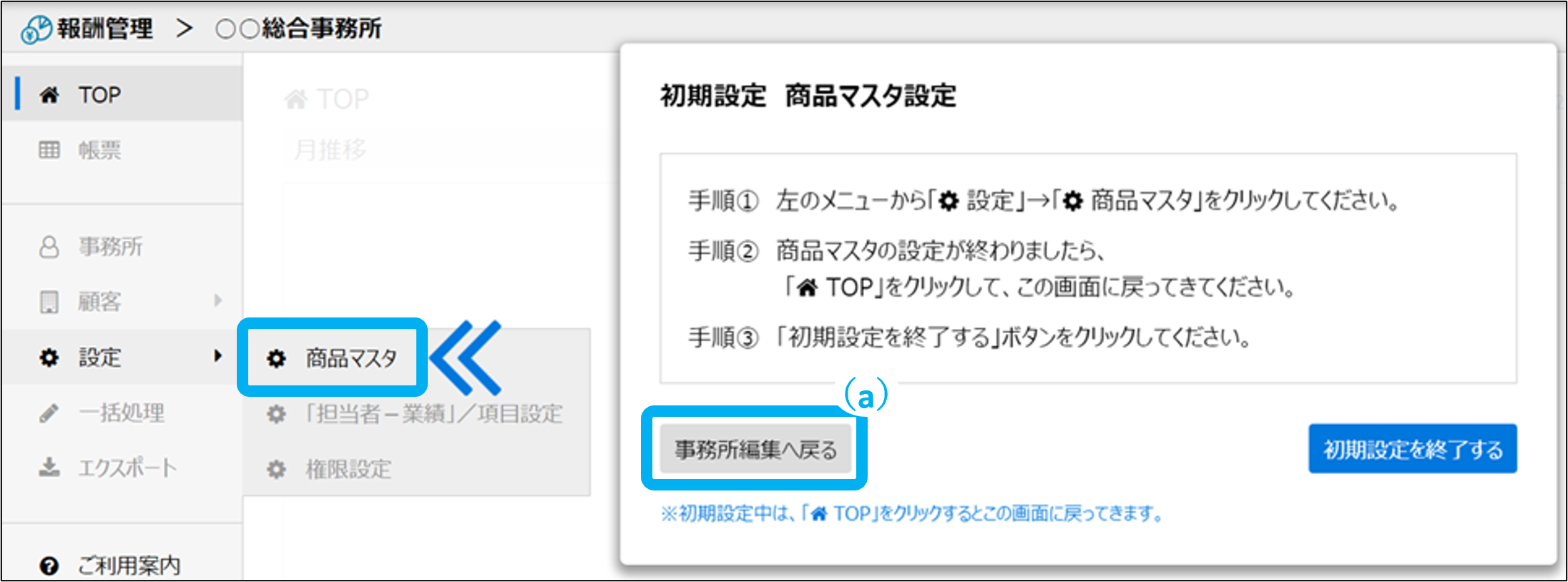 事務所情報の編集画面へ戻ることができます。