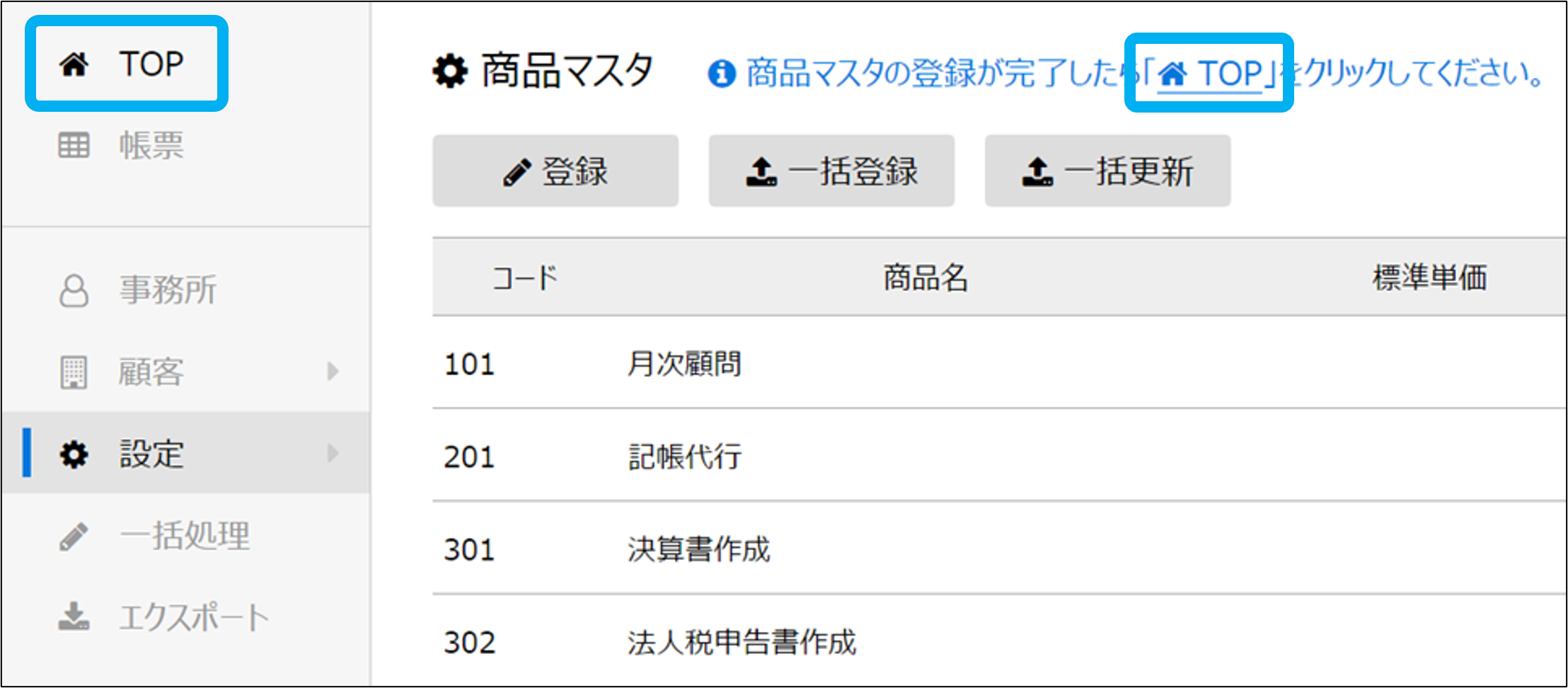 商品マスタ設定が完了しました。