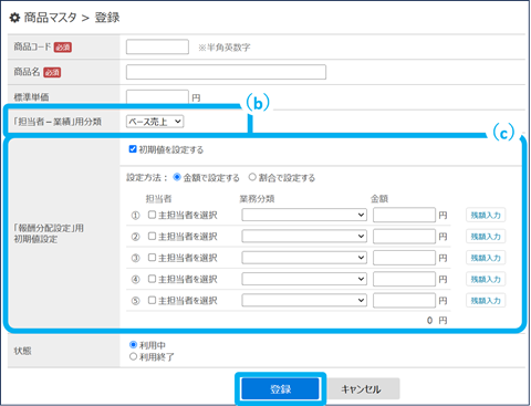 (c)「報酬分配設定」用初期値設定